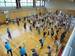 慌てて駆けつけましたら、「ラジオ体操!」です。沢山の方が当然のように一二三です。 猛暑の7月は「輪投げ大会」。秋は「ペタンク大会」、いやはや、お元気ですね! 9月15日(日)上飯田小学校体育館。輪投げ大会と同じようなチーム編成で、「今年は応援団が少ないかな」(佐野会長)。それでもこの天候を考えたら、すごいですね!それだけ、皆さんに浸透しているということでしょう。特にペタンククラブはありませんが、普段この校庭で自然に集まっているそうです。
