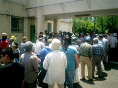 昨年の3・11震災発生による状況は、90人近くがコミュニティーへ避難し、40人が宿泊したという。今回の参加者に聞いてみると、「外出していて帰れず、川崎の知人宅へ逃れたが、帰りは大変だった。帰宅してみたら(12F)室内はメチャクチャだった」「6Fに居たけど、ほとんど被害はなかった」など様々。