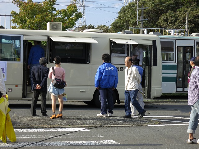 屋外では、防犯グッズ展示コーナーが設けられて、引き戸を簡単に開けられないようにする施前等を直接販売し、薬物防止キャンペーンバスでは、麻薬関係の資料が車内に展示され、外から見られるディスプレイにはビデオの映像が流されていた。